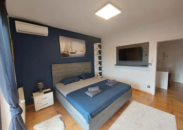 The 240 m^2 Sunny Sea Apartment Zadar is located 2.8 km from Zalazak Sunca and 2.5 km from Arsenal Zadar Cultural Center. This 2-bedroom apartment assures guests' safety through a safety deposit box, while also offering city views.